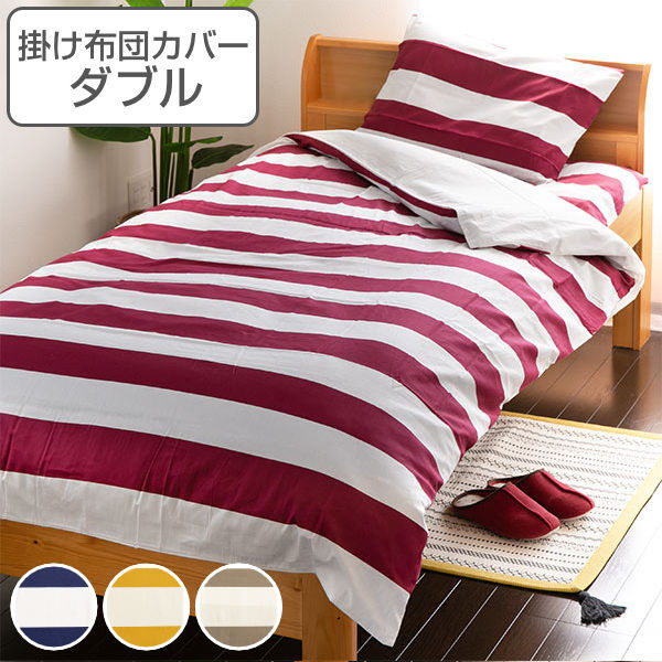 ボーダー柄のシンプルなダブルサイズの掛け布団カバーです。落ち着いた色味なのでどんなお部屋にも合わせやすいデザインです。※掛けカバーのみの販売です。
