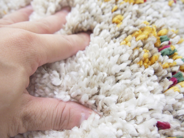 基礎になる下糸にパイル糸を絡みあわせて織り込んで作っていくため耐久性が抜群なラグです。敷くだけで高級感が出ます。