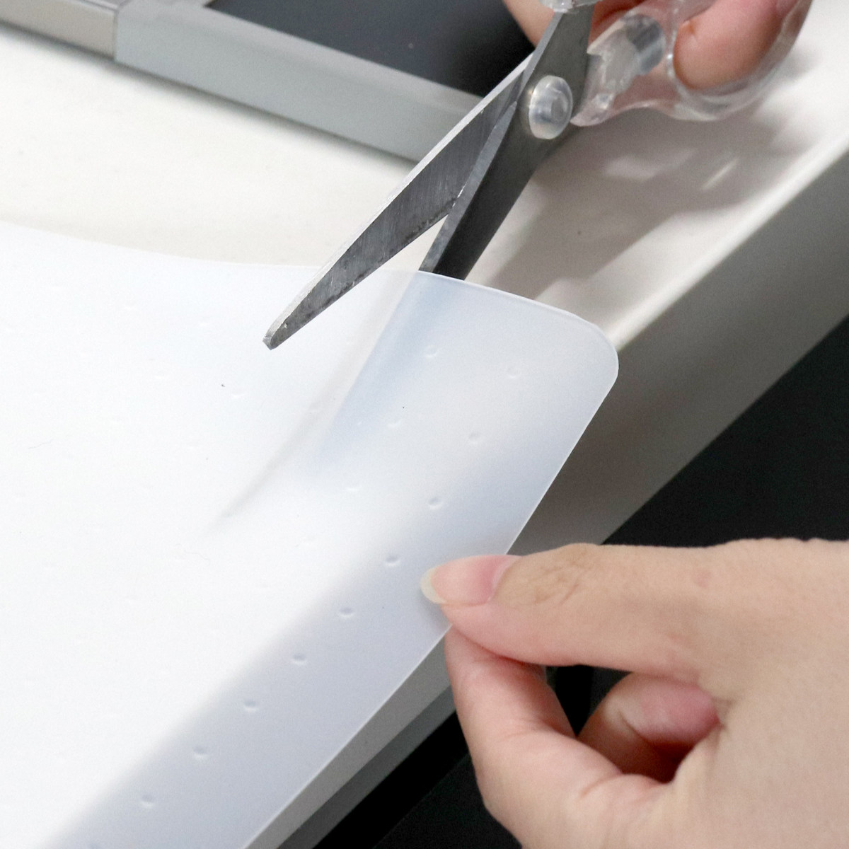 調理台等使う場所に合わせて、ハサミなどで自由にカットすることができます。より使いやすいサイズでお使いください。