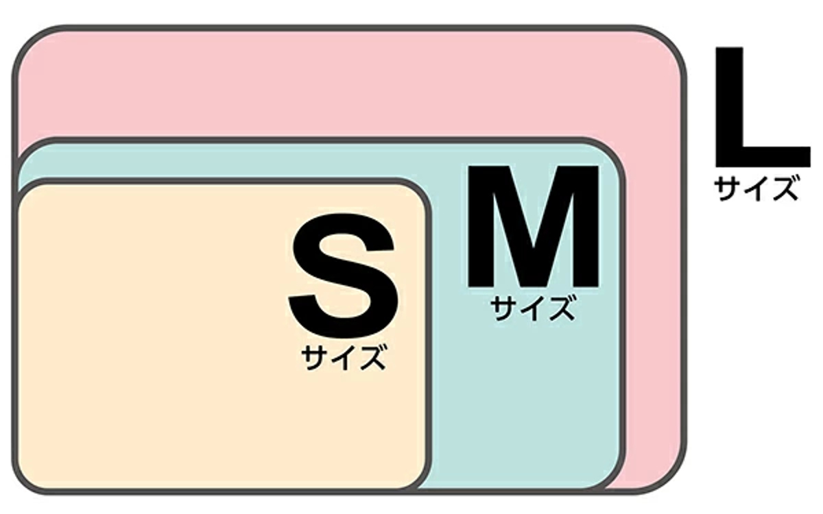 Sサイズ(約30×40cm)、Mサイズ(約34×59cm)、Lサイズ(約45×65cm)と3サイズご用意しています。ご自宅のキッチンにあわせてお使いください。