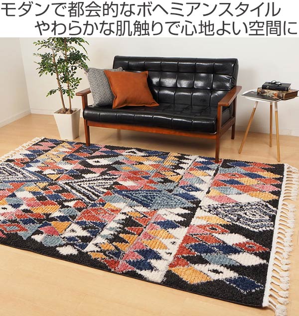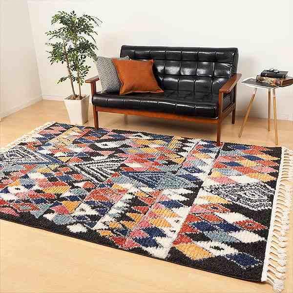 ラグの両端にはフリンジが付いており、さりげなくデザイン性を高めます。