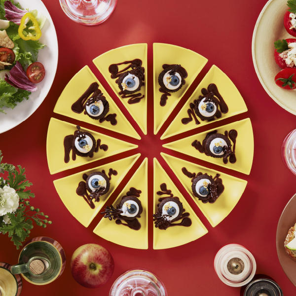 色々なサイズのプレートと組み合わせて、100%の円が作れるプレートです。こちらの10%は、チョコレートやクッキーなどの小さなお菓子を盛りつけたり、醤油やソース皿としても使っていただけるサイズです。軽くて割れにくい素材でできているので、お子様と一緒のホームパーティーでも大活躍です。