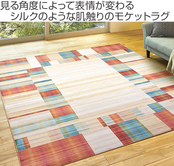 レーヨン入りでシルクのような肌触りで見る角度によって表情を替える美しいモケット織です。