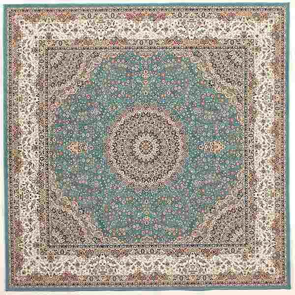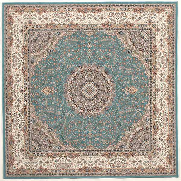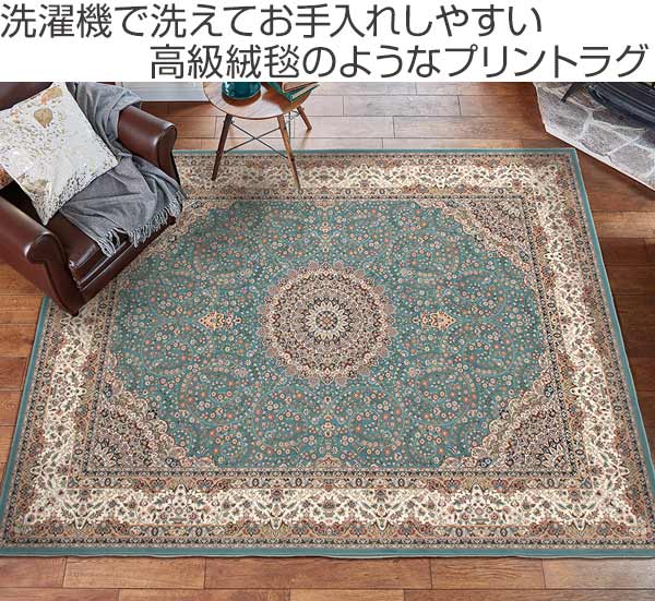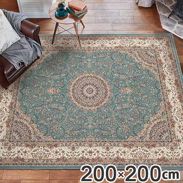 ラグ 洗える転写プリントラグ ターコイズ 200×200cm ( ラグマット カーペット 絨毯 洗える 丸洗い 滑り止め付き 床暖房対応 ホットカーペット対応 お掃除ロボ対応 メダリオンデザイン 清潔 豪華 上品 )