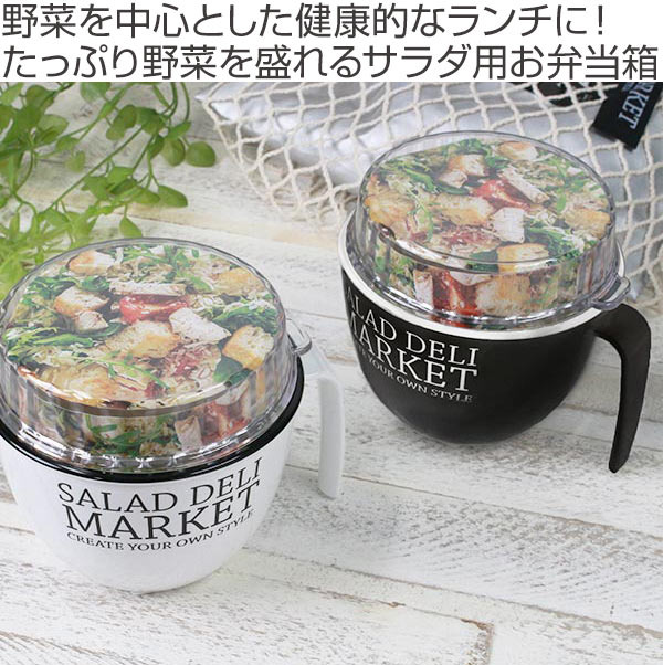 マグ型で野菜を盛りやすい、サラダランチの為のお弁当箱です。蓋は透明なので色鮮やかな野菜を入れると、蓋越しに彩りが映えて、目で見てもお楽しみいただけます。普段、一般的な食品保存容器を使っている方は、可愛くてお洒落なお弁当箱に変えてみてはいかがでしょうか?