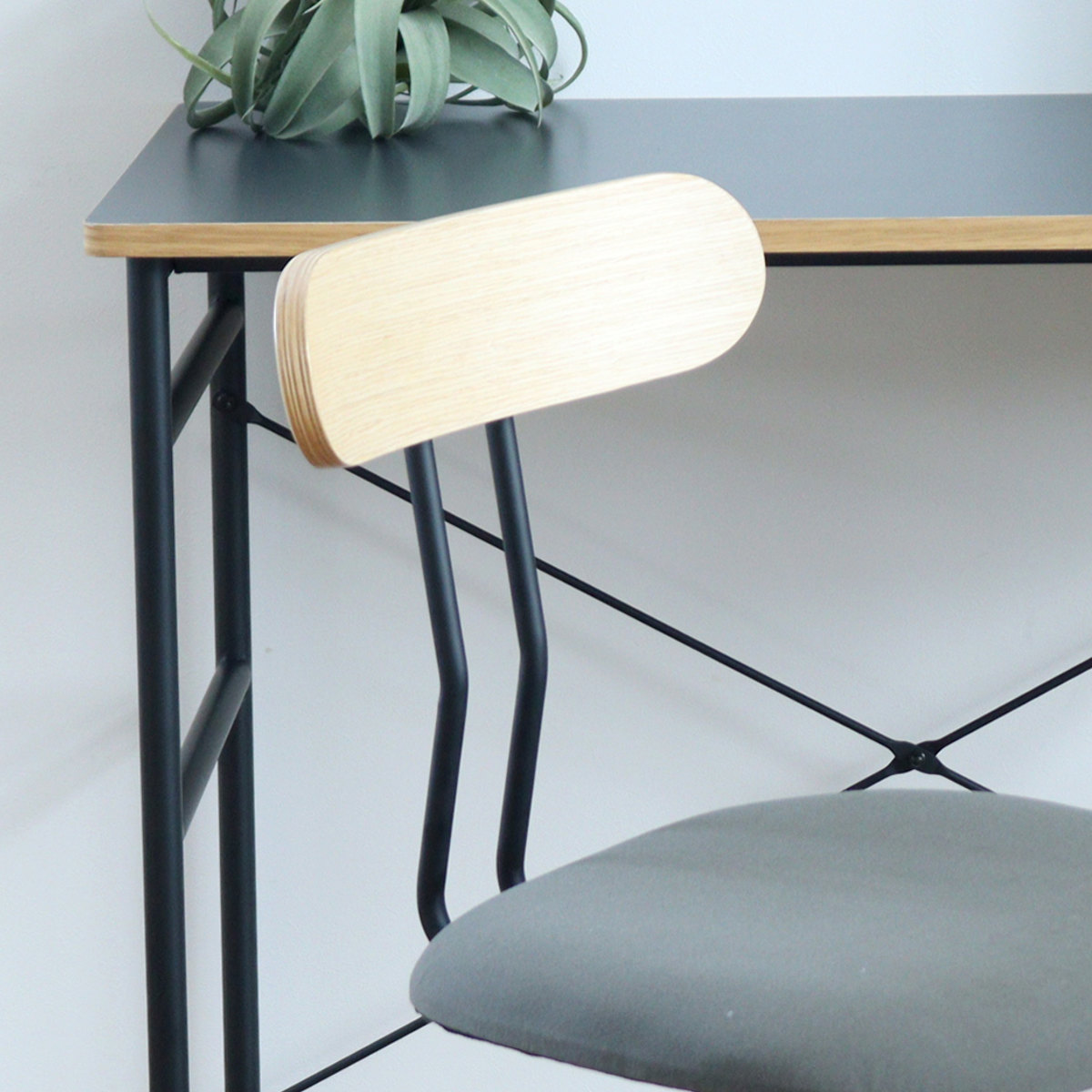 背もたれの部分は美しい木目や質感を楽しめるオーク突板を使用しています。メープル調の色味も魅力です。