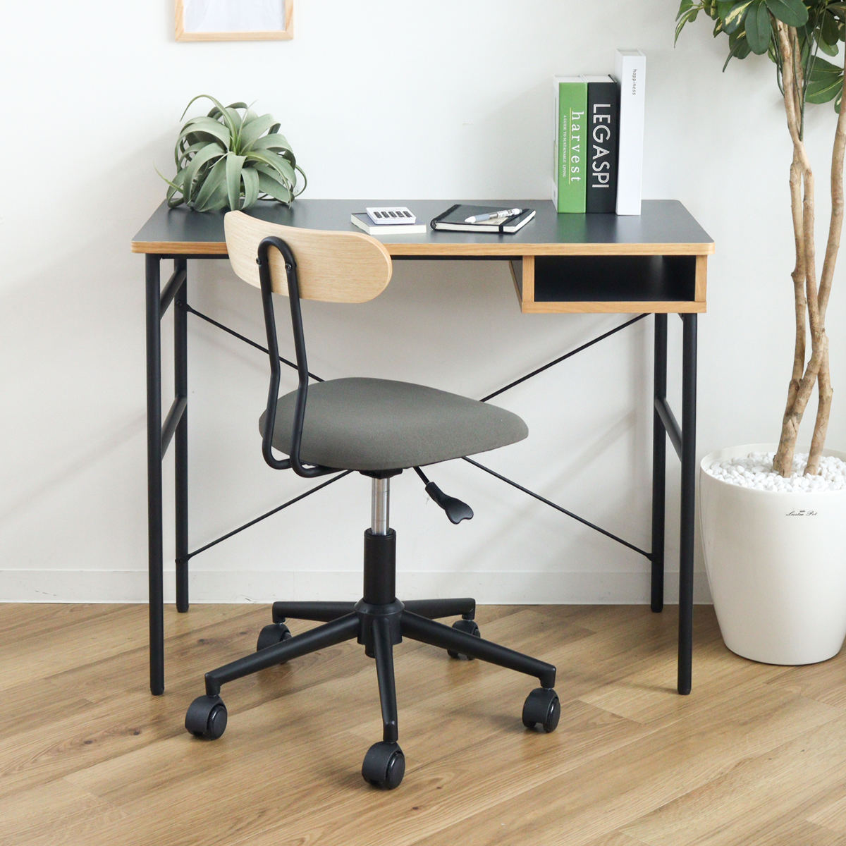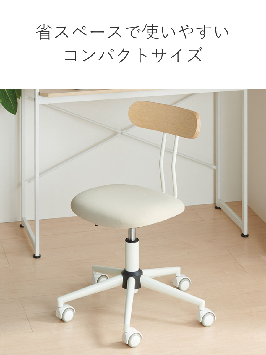 お部屋のインテリアに馴染む、シンプルでスタイリッシュなデザインのチェアです。コンパクトなので省スペースで使いやすく、仕事用、お子様の勉強用、店舗にと様々なシーンでご使用いただけます。