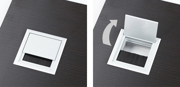 高級感を演出するアルミ製の配線カバーは、天板両端に配置され、中央にノートパソコンやディスプレイを配置するときにも邪魔になりません。