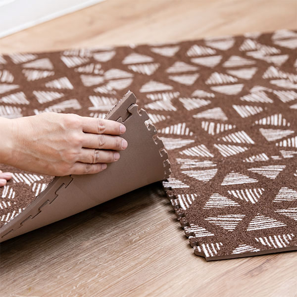 マットはフチ付きで、そのまま敷くだけで高級ラグのような仕上がりになります。見た目もスッキリします。