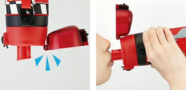 蓋が固定できるキャップロック設計。飲んでいる時に蓋が邪魔にならず、片手で素早くスムーズに水分補給できます。