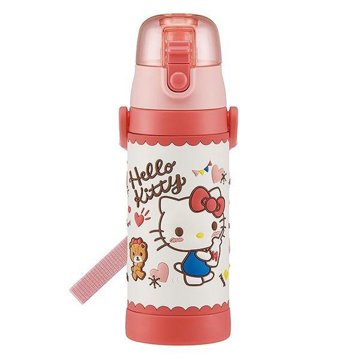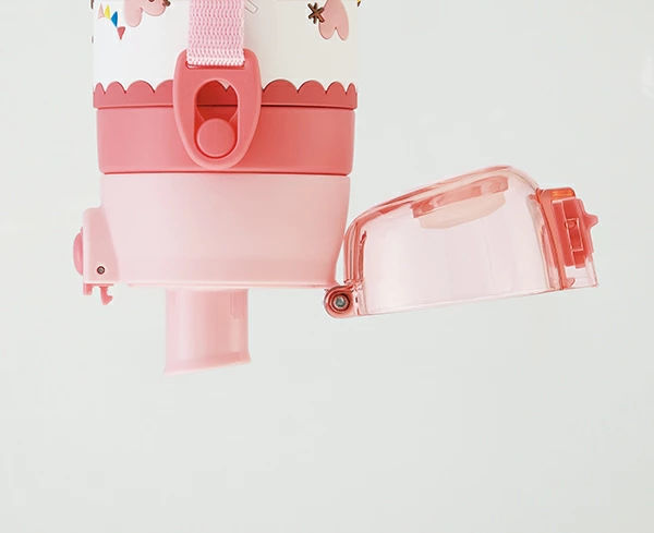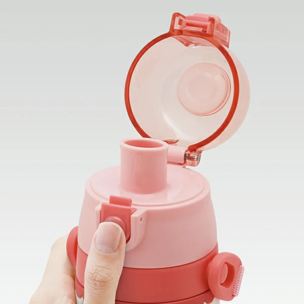 水筒の蓋はボタンを押すだけで開けることができるワンタッチ式です。飲み終わったら蓋をカチッと閉めるだけなので、小さなお子様でも簡単に開閉できます。