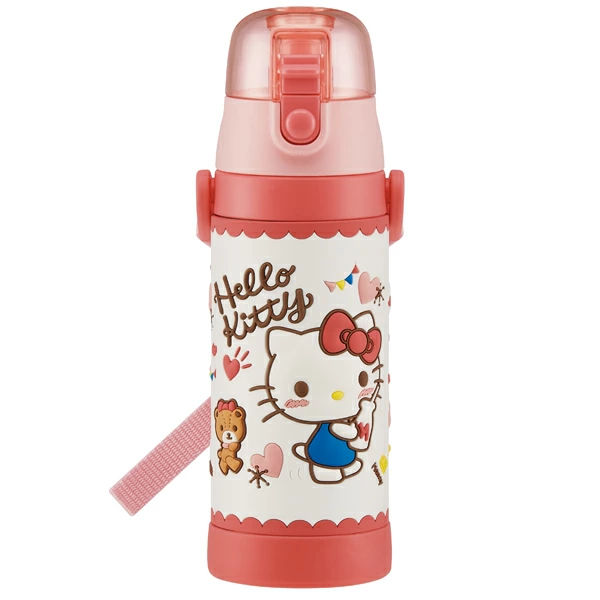 すべりにくく持ちやすい保冷専用のステンレスボトルです。プリントではなく、ぷっくりした3Dデザインが特徴です。真空二重構造なので、保冷効果が長持ちします。ショルダーベルト付きで、肩に掛けられるので持ち運びに便利です。ネームプレート付きです。