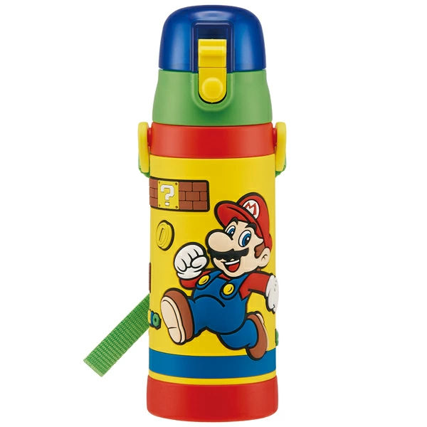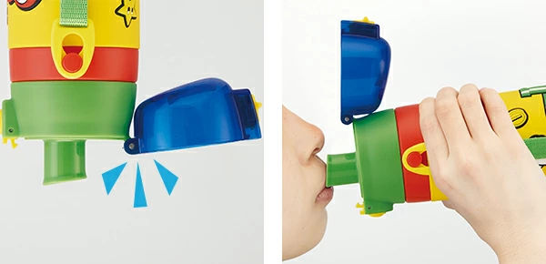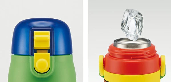 水筒の蓋はボタンを押すだけで開けることができるワンタッチ式です。飲み終わったら蓋をカチッと閉めるだけなので、小さなお子様でも簡単に開閉できます。