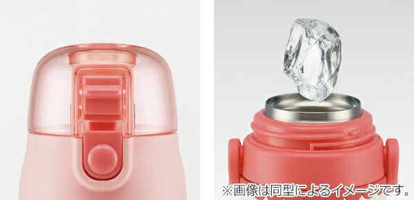 勝手に蓋が開かないロック機能が付いているので、かばんの中などで漏れる心配がなく安心です。水筒の口は広口なので大きな氷も入れやすくなっています。また、洗う時もしっかり洗えて衛生的です。