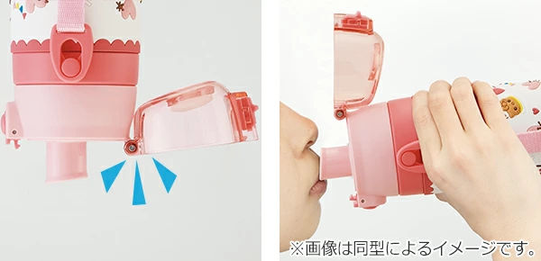 水筒の蓋はボタンを押すだけで開けることができるワンタッチ式です。飲み終わったら蓋をカチッと閉めるだけなので、小さなお子様でも簡単に開閉できます。
