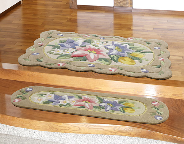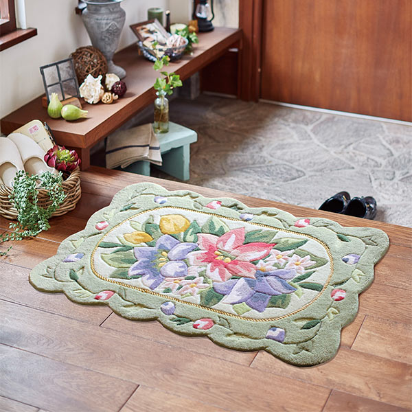 美しい色使いと立体感のある花の模様が美しい玄関マット