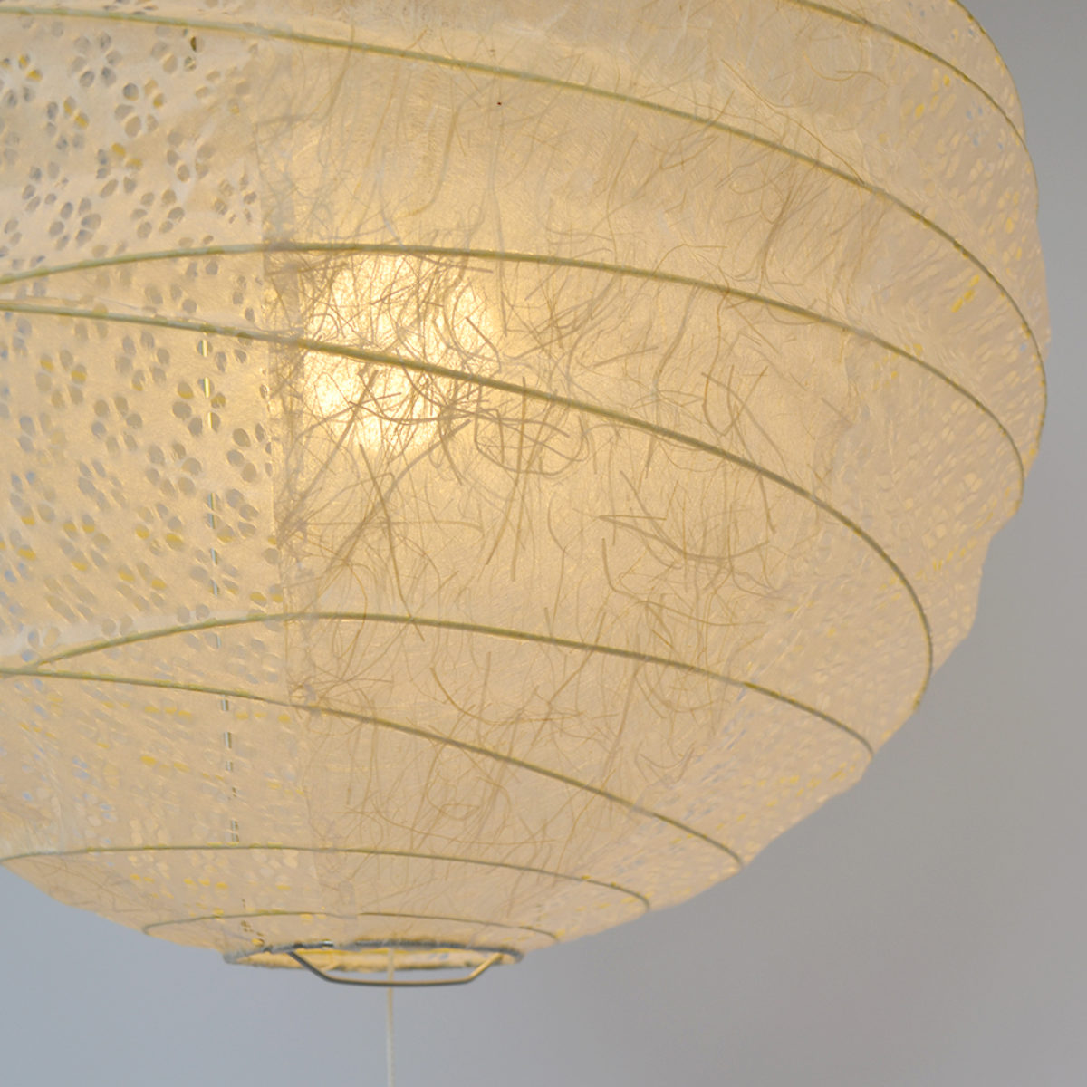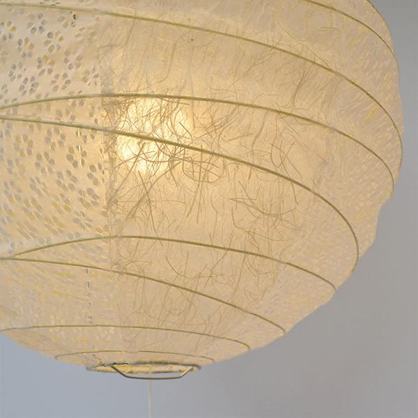 提灯ヒゴを交差させながら巻いたデザインのペンダントライトです。透かし和紙を使用し、灯りを点けると美しい小梅柄が広がります。和紙を通して伝わるやわらかな灯りは、空間に明るさと癒しを与えてくれます。和モダンな雰囲気で、ご家庭だけでなく店舗照明にもおすすめです。