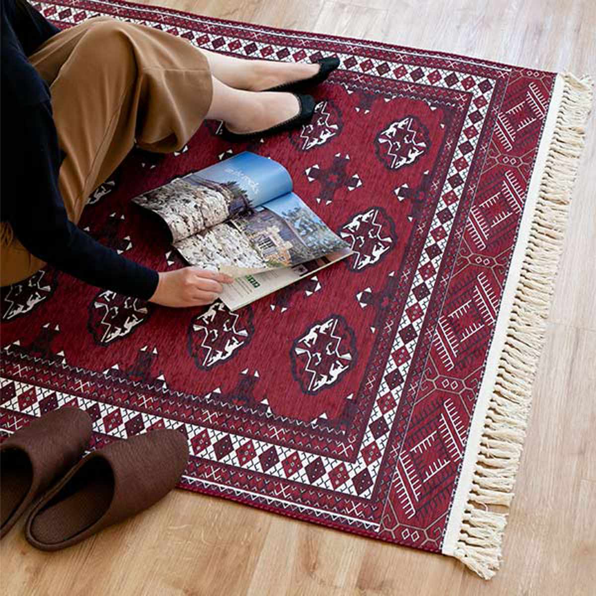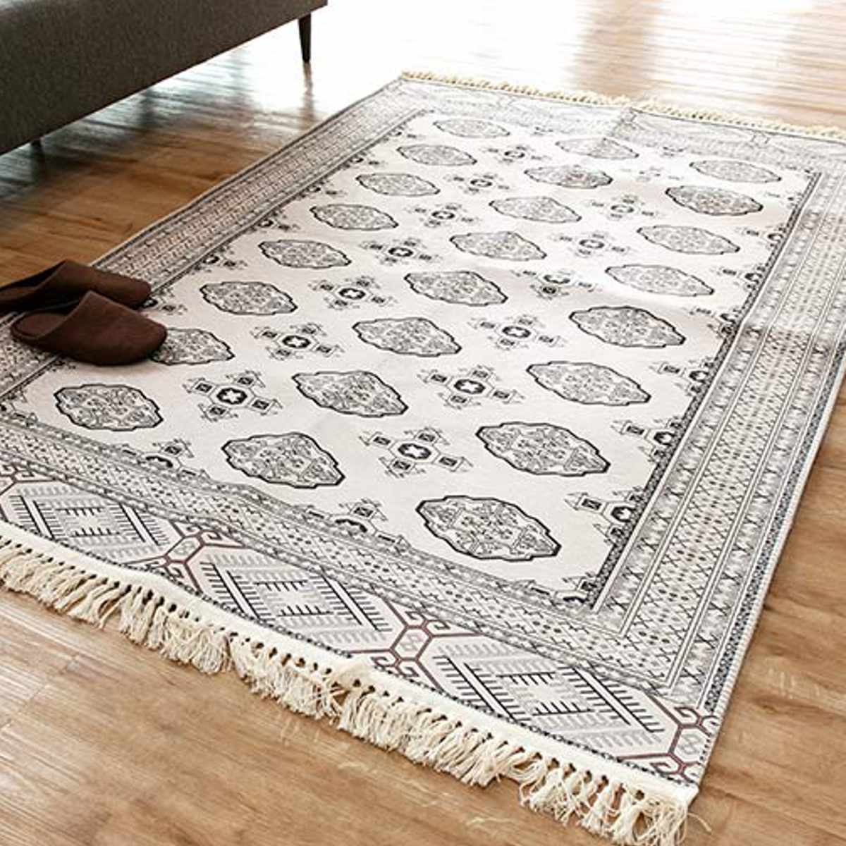 伝統的な絨毯をプリントで繊細に再現しました。インテリアの家具とも相性抜群です。お気に入りの家具を置いてみてはいかがでしょうか。