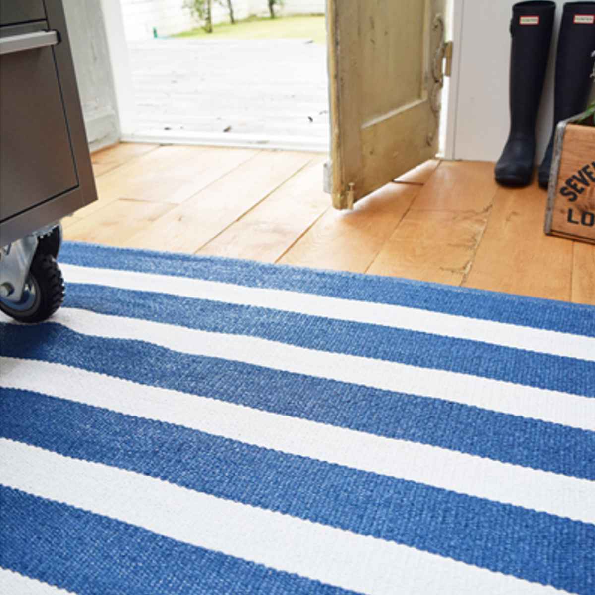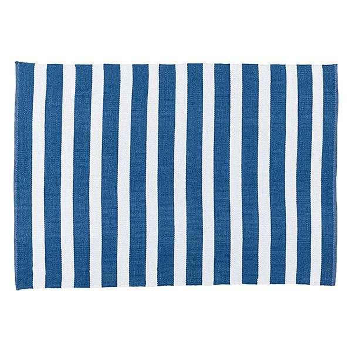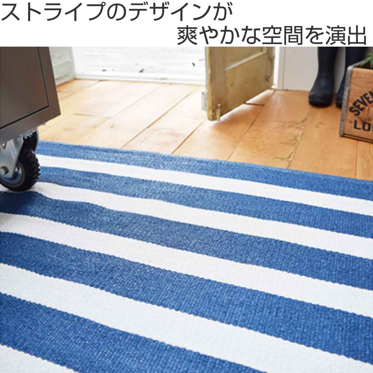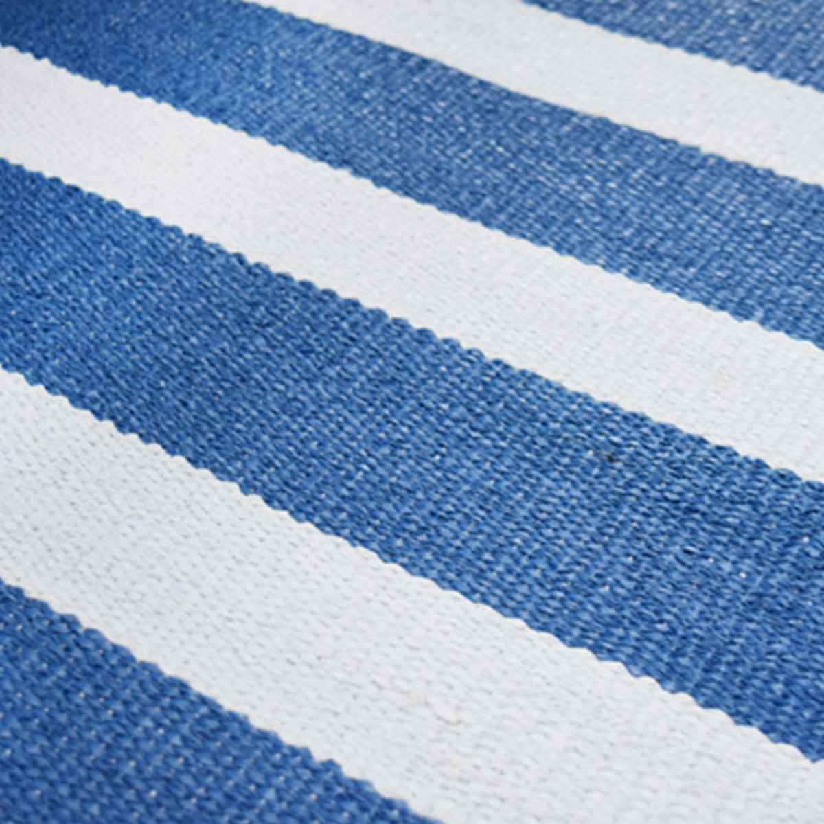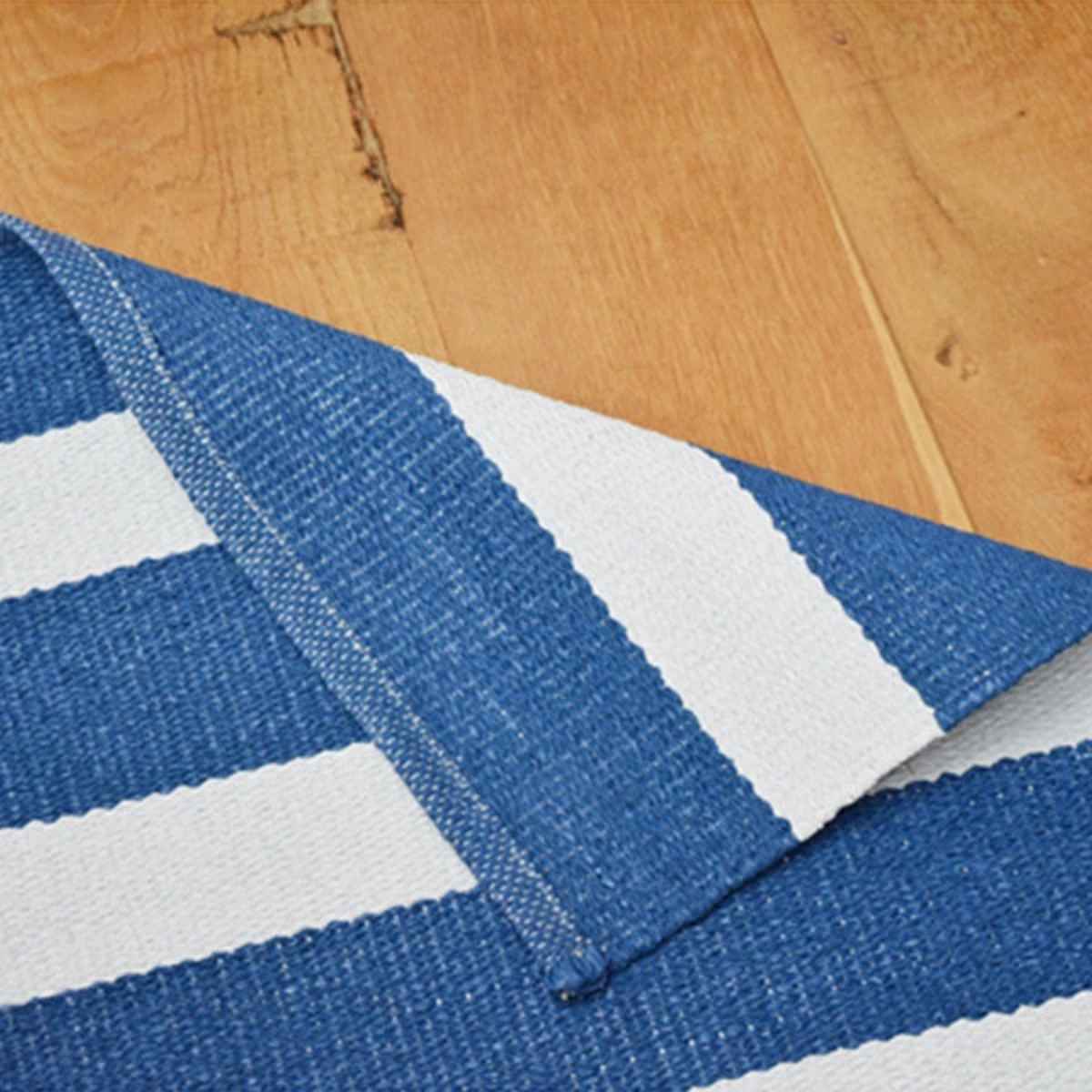 白と青のストライプデザインが爽やかな空間を演出します。リバーシブルなので、ひっくり返してもお使いいただけます。さらっとした肌触りが思わず素足で踏みたくなります。