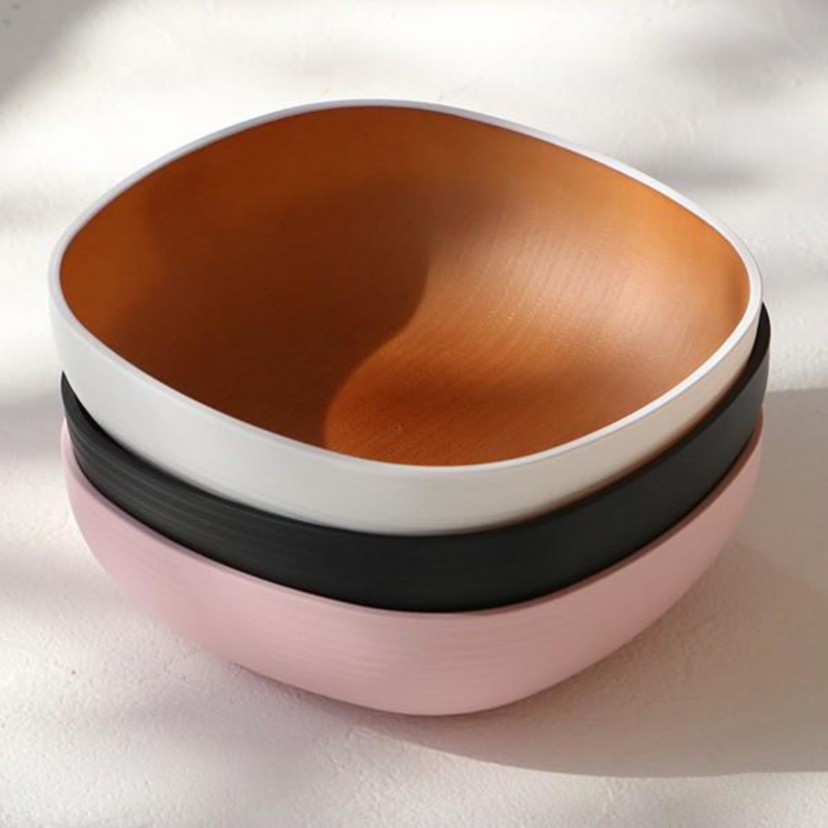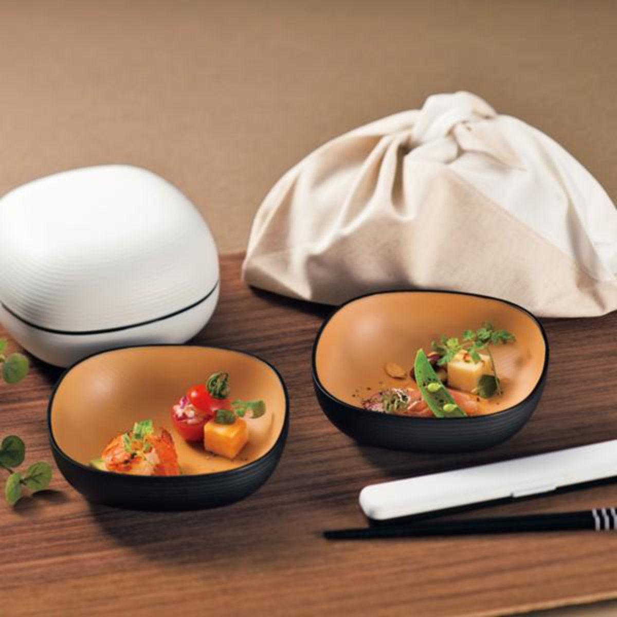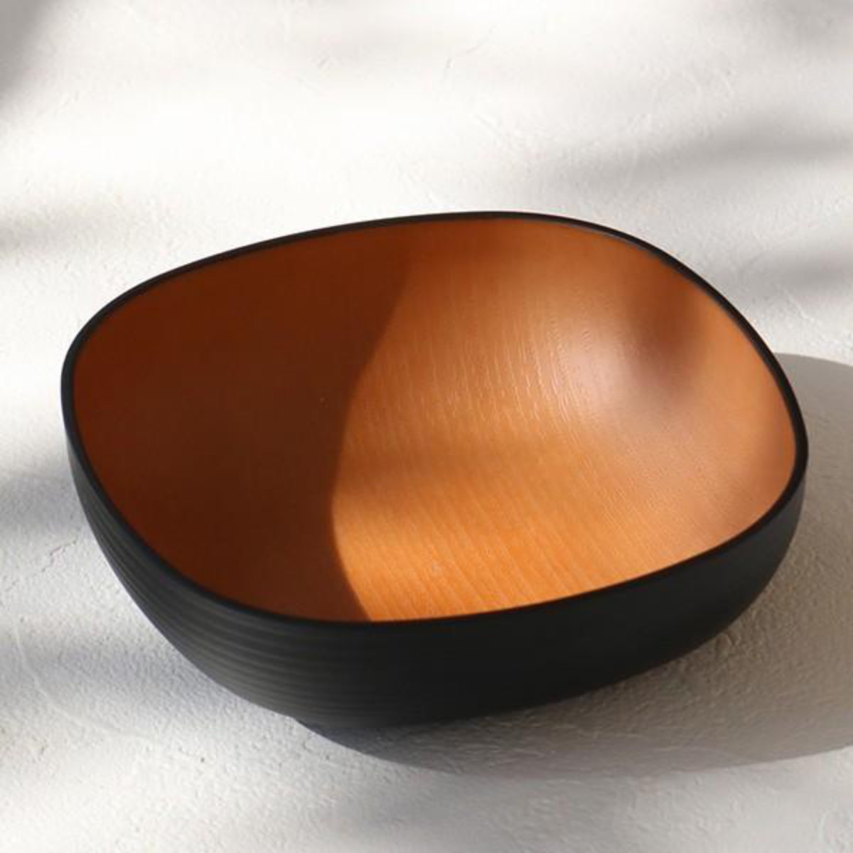 砂紋シリーズは、誰にでも扱いやすい木製風食器です。日本庭園の「砂紋」をイメージし、内塗りにもこだわり、木目調に仕上げました。和食にも洋食にも映える器です。シリーズで揃えると美しく、食卓が華やかになります。
