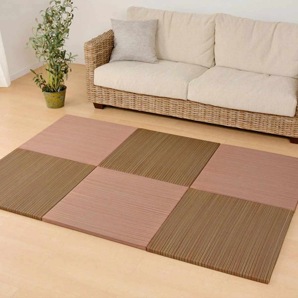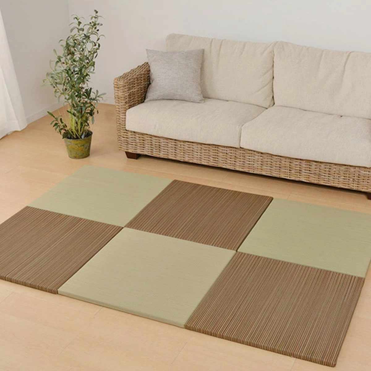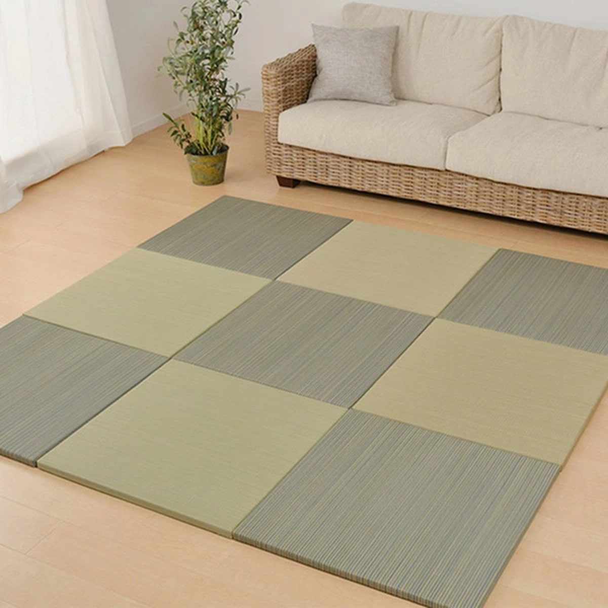 置き畳を目の方向を変えて敷くと、光の加減で市松模様のように見えるのでバリエーションが増えます。2色を色違いに敷くことで、更に雰囲気が変わり、自分だけのコーディネートができます。