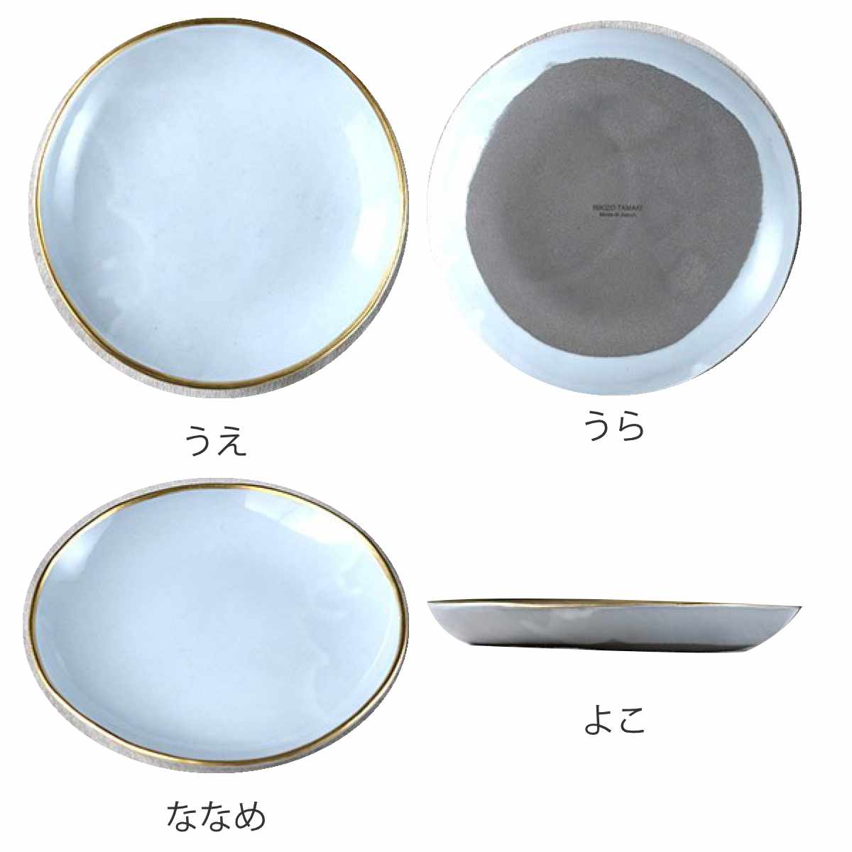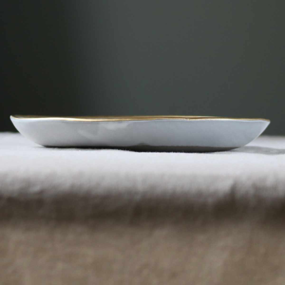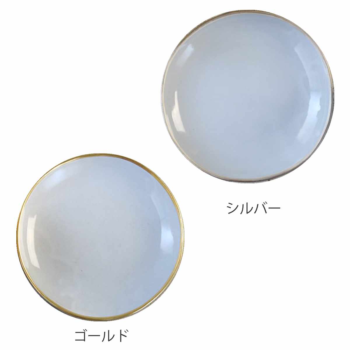 ゴールドとシルバーの縁取りが上品なアクセントになっています。裏面以外は釉薬が塗られ、つるりとした質感です。