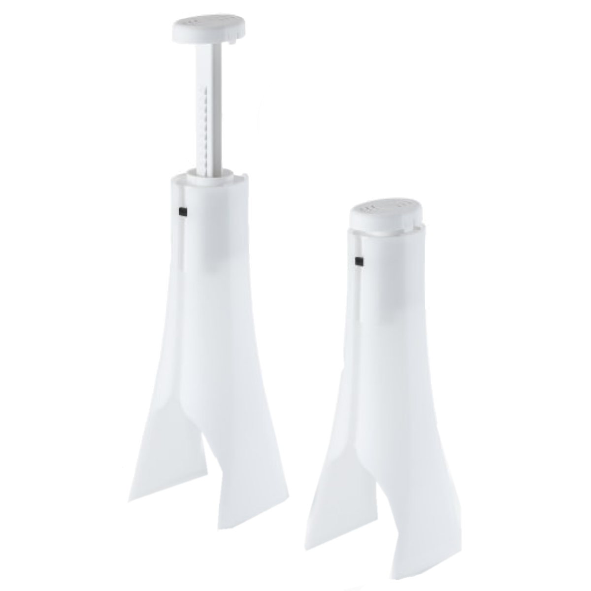 中央のボタンを押しながらスライドするだけで簡単に高さ調節が可能です。ミドルサイズからロングサイズまで、幅広いタイプのブーツに対応します。