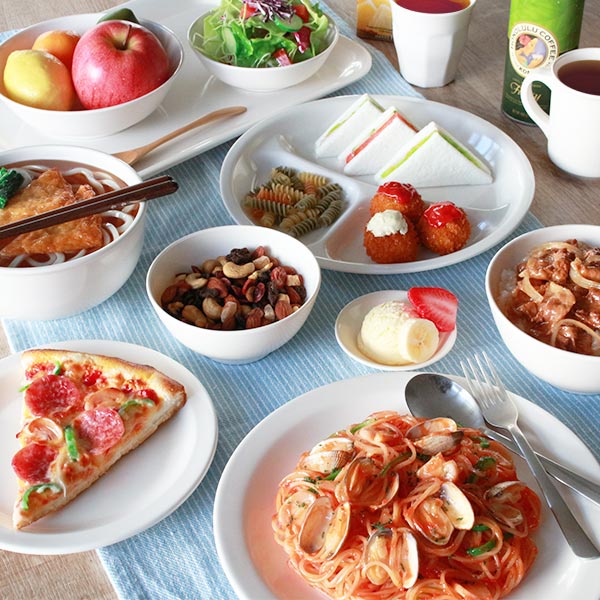 清潔感のあるホワイトカラー。和食、洋食、中華など、どんなメニューにもぴったりでお料理も引き立ててくれます。