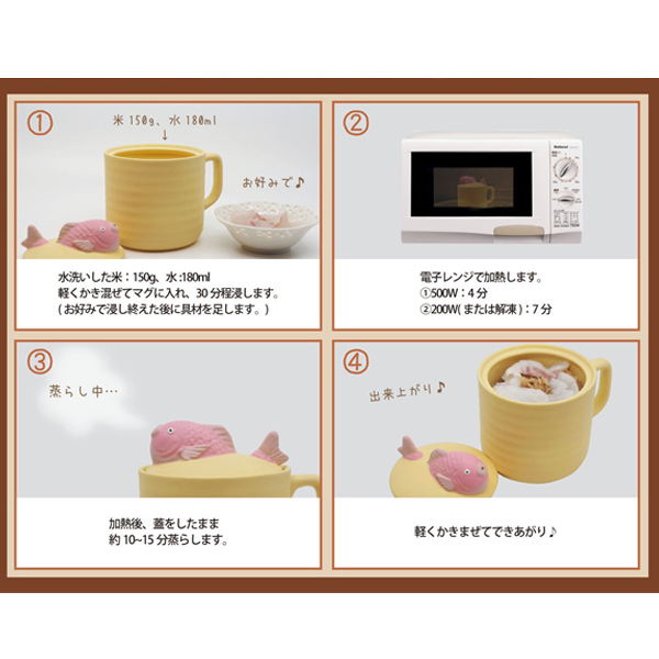 ●電子レンジで約1合分のご飯が炊けるマグカップです。