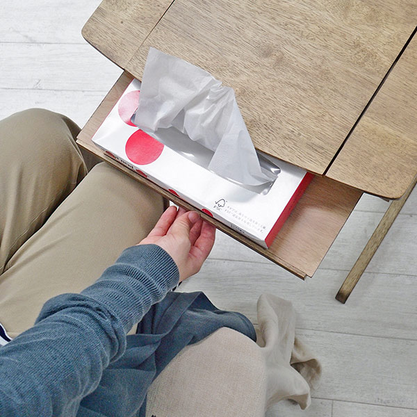 テッシュを収納できるスペースがあり、使わない時は見た目もスッキリ整頓できます。