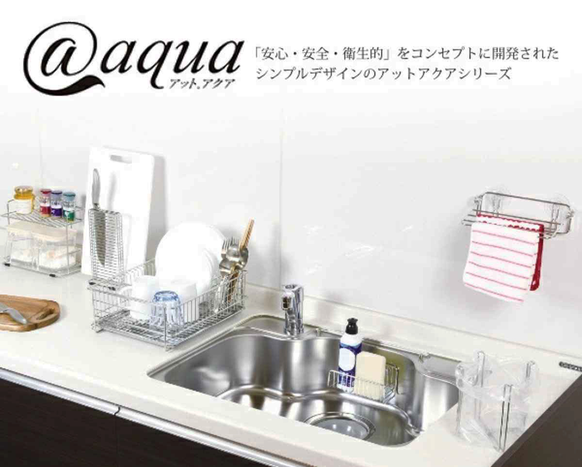 アットアクアは、基本的な機能を一から見直して開発した水廻り用品シリーズです。特にスタッキングにこだわり、多くの人が不満に感じている収納性を追求しました。ザル、ボウルなどの調理用品から水廻り収納まで、それぞれの使用シーンに合わせ、サイズ、形状を豊富に取り揃え、様々なニーズに応えます。