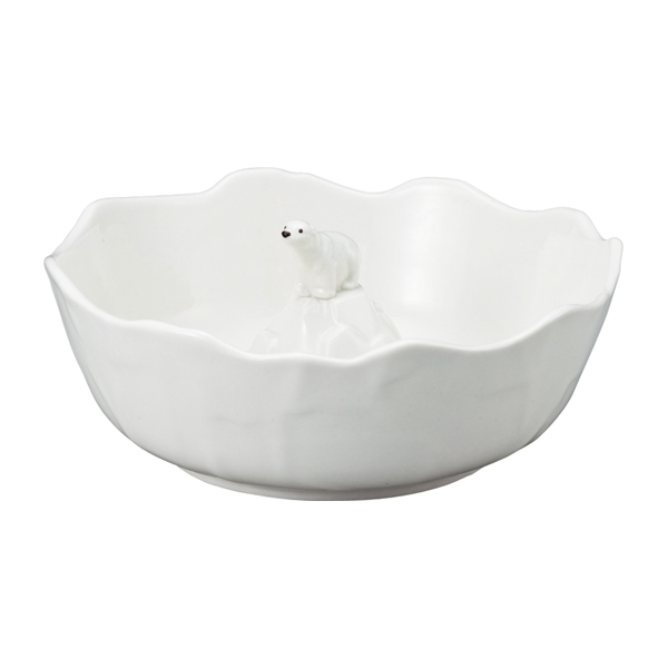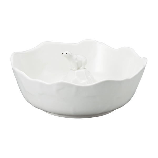 ホッキョクグマの周りにそうめんを盛って楽しく美味しくいただけます。そうめんだけでなく、そばやうどんを盛り付けるのにちょうど良い器。お祝いや夏の贈り物としてもおすすめです。