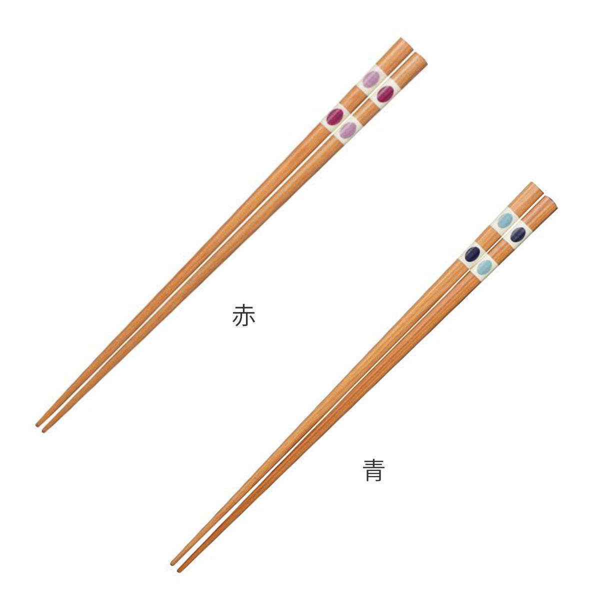 持ち代部分に可愛いドット柄をほどこしたお箸です。木製で手にしっくり馴染み、食卓のアクセントに。色違いで使うと夫婦箸にもなるのでちょっとしたプレゼントにもおすすめです。