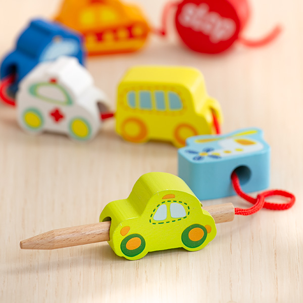 ひも通し 木製 ビーズ トラフィック 車 おもちゃ 知育玩具 Classic クラシック ( 紐通し 玩具 木のおもちゃ 乗り物 幼児 紐 通す ビーズ遊び 木 18ヶ月 1歳半 おしゃれ )