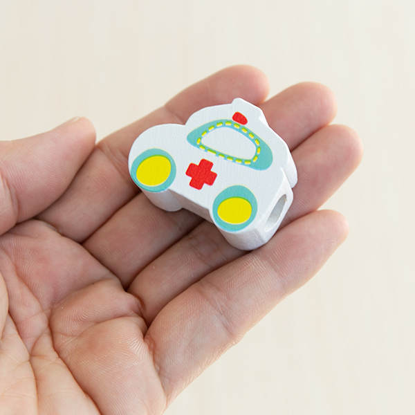 乗り物や標識をモチーフにしたパーツは、紐に通して遊ぶだけでなく、お部屋に飾って楽しむこともできます。