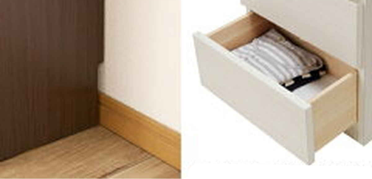 幅木を避けて壁にピッタリと設置できます。