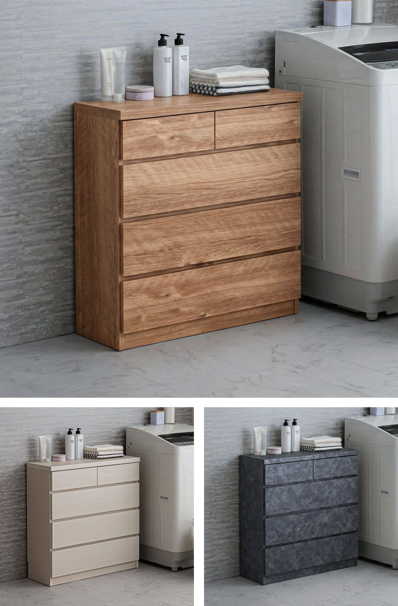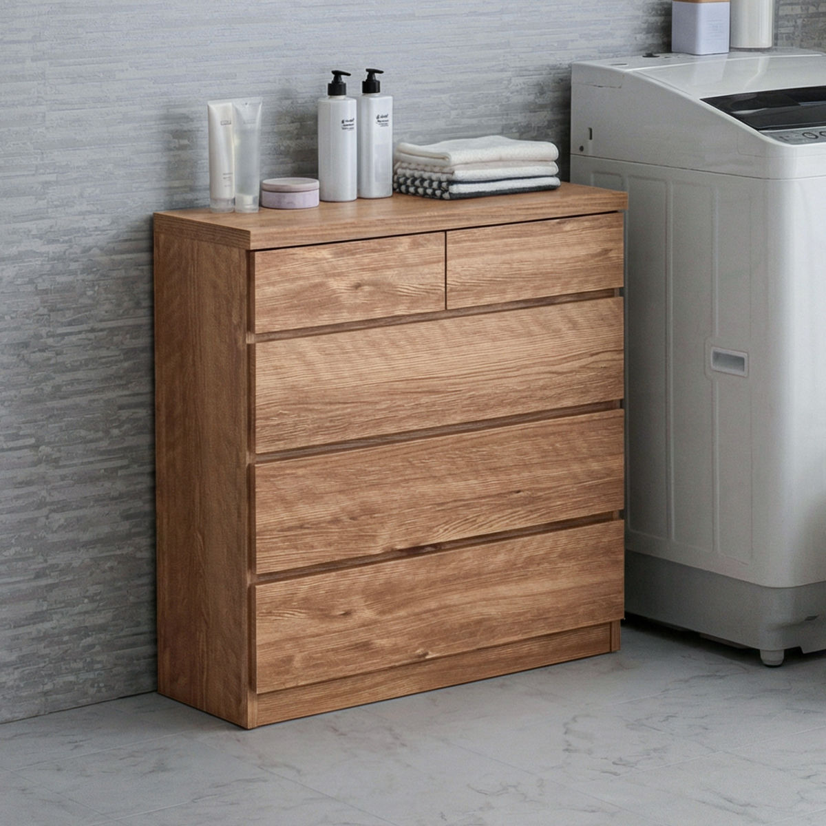 奥行き30cmのスリム設計チェストは、リビングや寝室、子供部屋などに置いても圧迫感がなく、空間を広くお使いいただけます。取っ手のないシンプルなデザインなのでどんなインテリアにもなじみます。