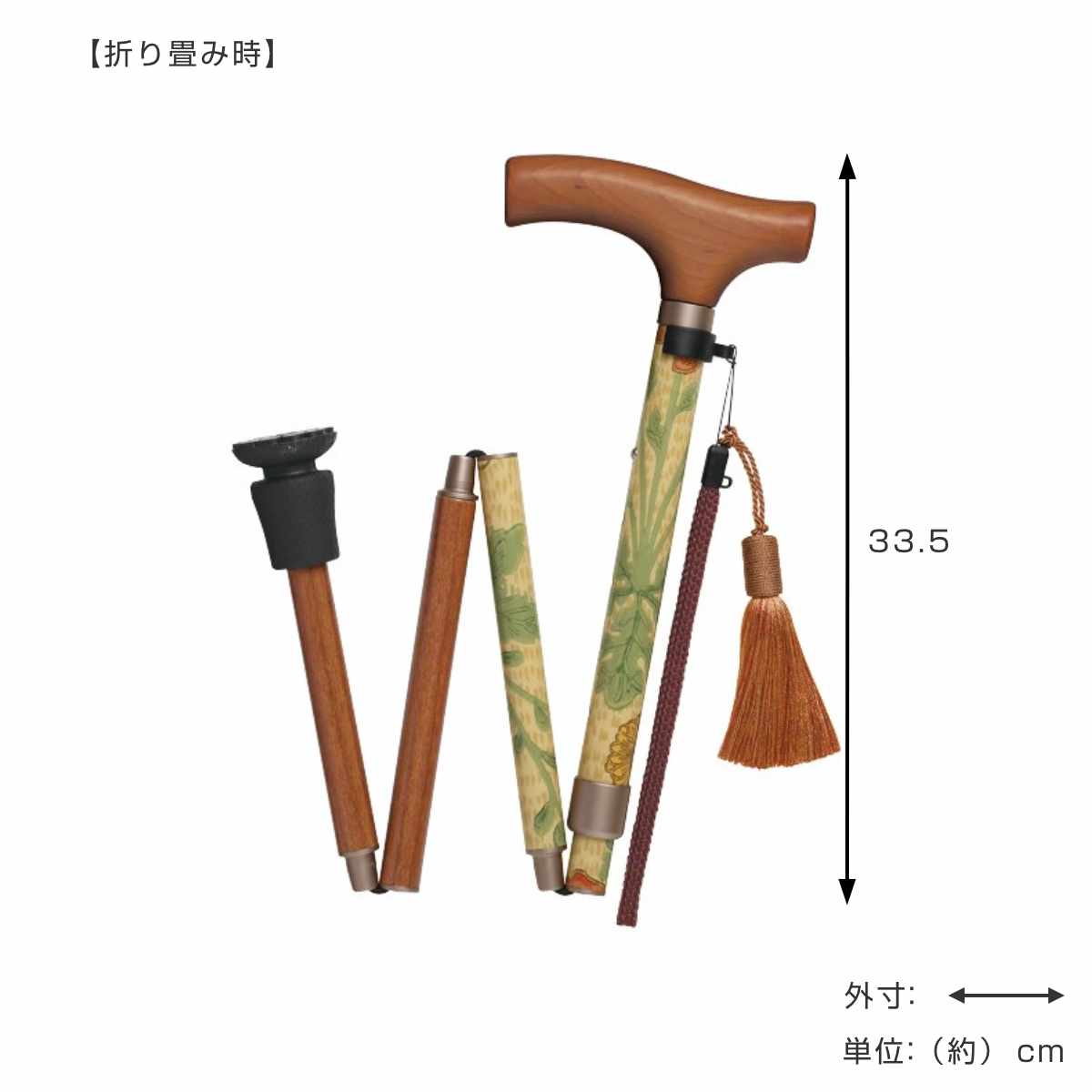 折りたたみ時は約33.5cmになる持ち運びに便利な杖です。シャフトが一直線になるように広げると組み立てられます。