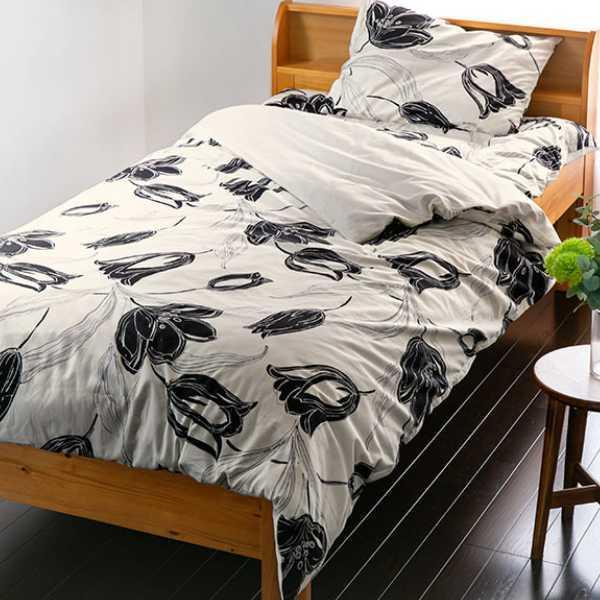 上品なチューリップ柄の掛け布団カバー&枕カバー2枚 ダブル