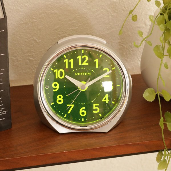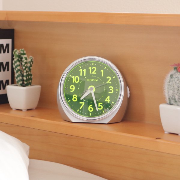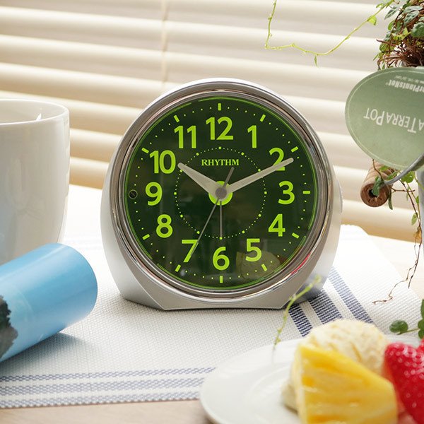 秒針がすべるようにして文字板上をスムーズに動きます。カチカチ音が気にならないため寝室などの静かな場所でのご使用におすすめです。