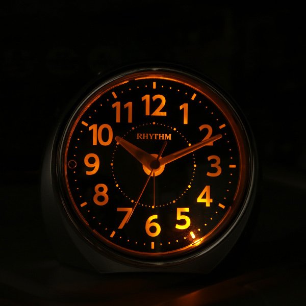 明暗センサーが明るさを感知して、暗くなると文字盤を照明します。暖色系の灯りで夜も時刻の確認ができます。