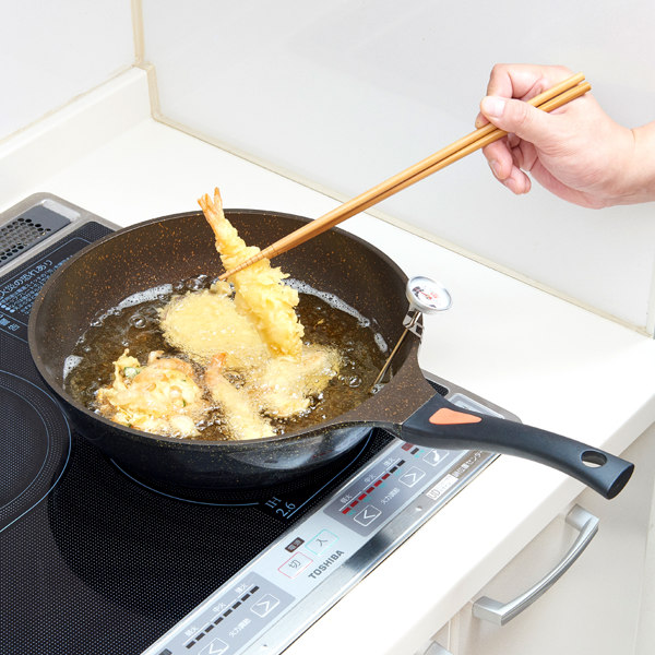 底厚は約5.5mmの肉厚設計となっており、蓄熱性に優れています。保温力があり食材に均等に火が入るため、煮込み料理も煮崩れせずおいしく仕上がります。また、油の温度が下がると失敗しやすい揚げ物料理も、高温度を保ってカラッと上手に揚げあげられます。