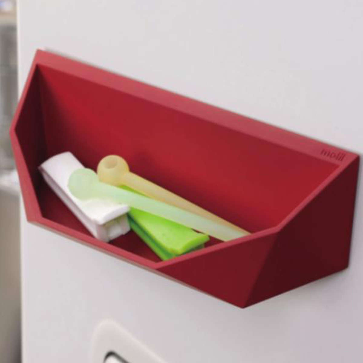 ●マグネットで冷蔵庫やレンジフードなどに設置できる小物ポケットです。