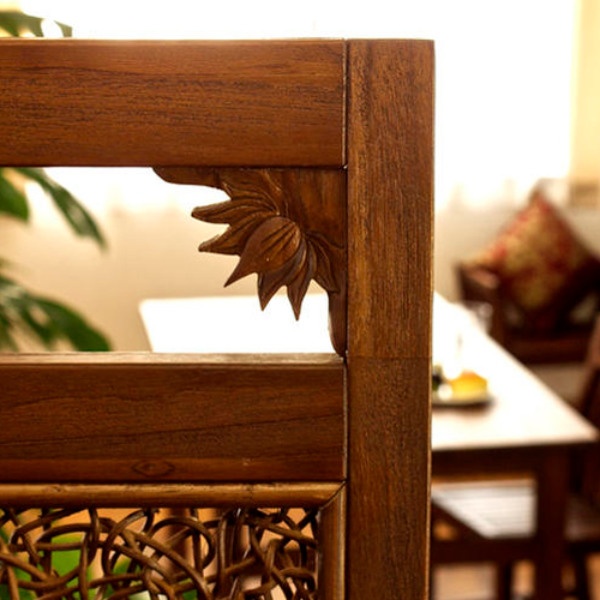 チーク無垢材を贅沢に使用した、アジアンテイストで重厚感があるパーティションです。チークの素材感をそのまま活かした、この世に2つとない木目のデザインになっており、ざっくり編み込んだラタンの素材感がエスニックなアジアンスタイルを演出してくれます。