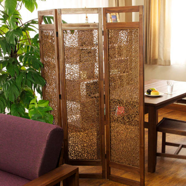 お部屋の間仕切りとして、空気の流れを遮らない機能的なアジアンのお部屋作りに最適なパーティションです。