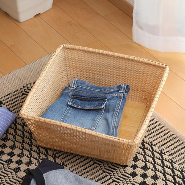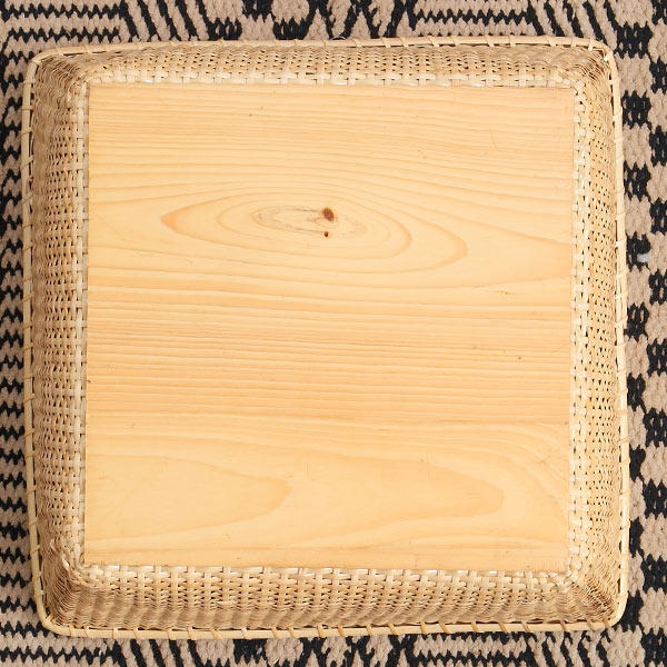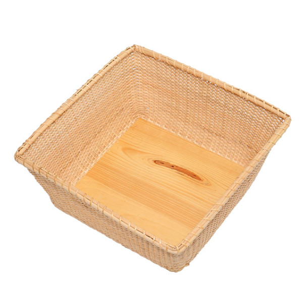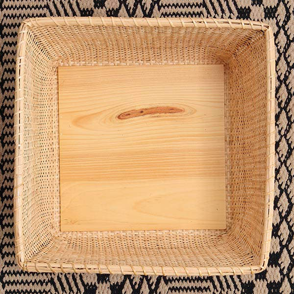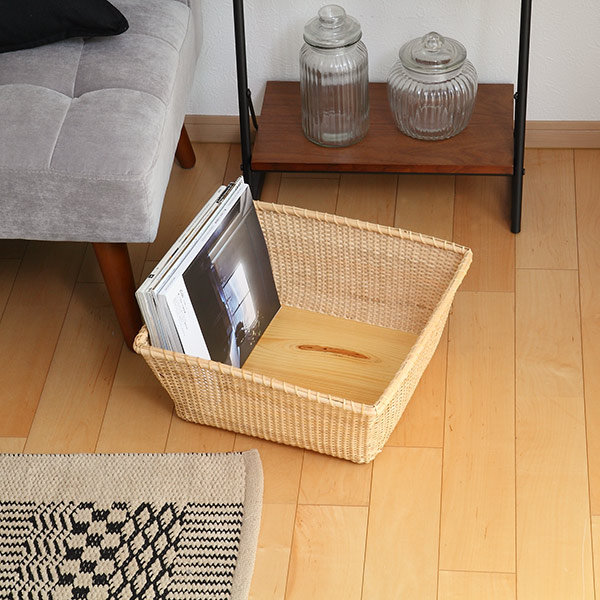 中底と裏底両面にべニア板を使用しております。板が両面にあることで、頑丈になりバスケットを守ってくれる役割にもなっています