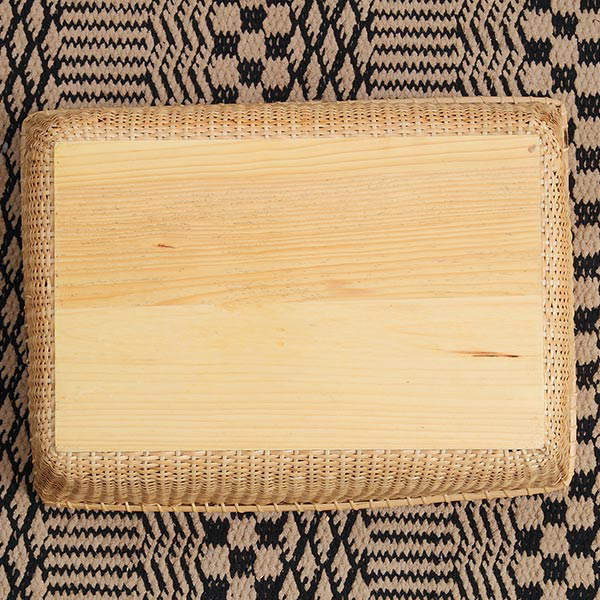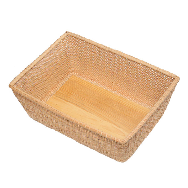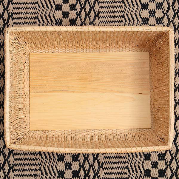 中底と裏底両面にべニア板を使用しております。板が両面にあることで、頑丈になりバスケットを守ってくれる役割にもなっています。