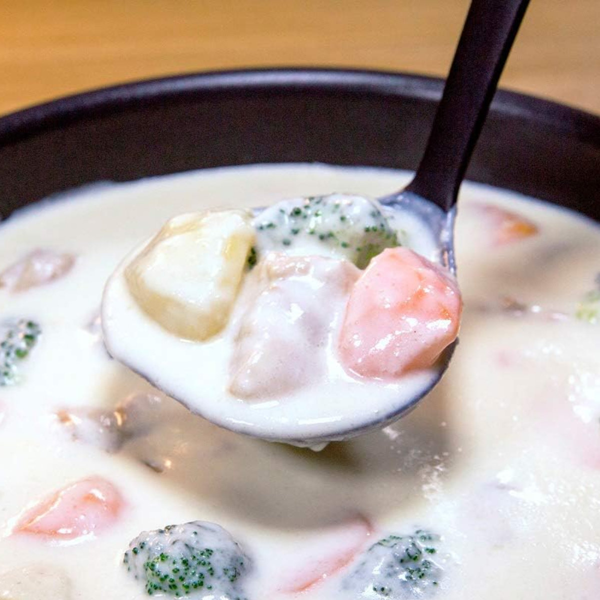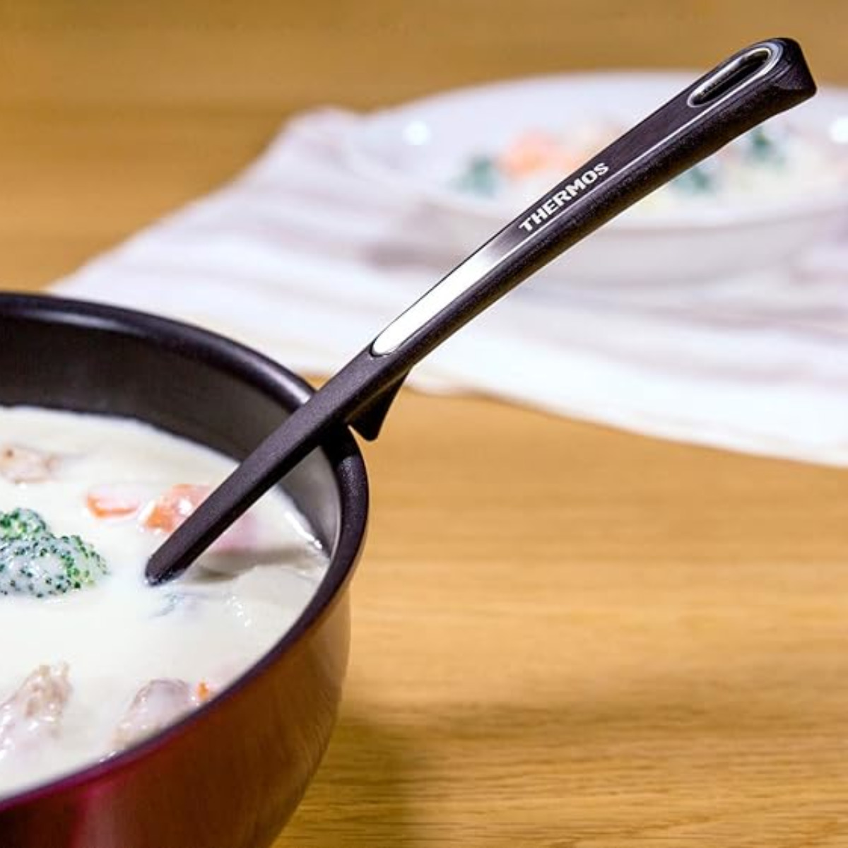 直線部分がなべ底にピタっと密着するので底にある食材をしっかりすくうことができます。広がりすぎず食器にスッと注げるので毎日の使いやすさにこだわりました。