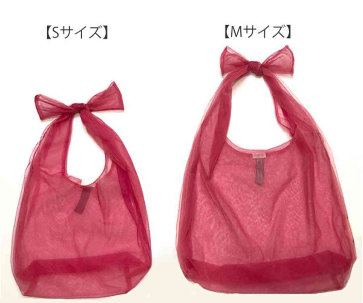 使わない時は、内側に付いたリボンゴムでかわいくコンパクトにまとめられます。小さく収納できるので、サブバッグとしても持ち歩きやすいです。