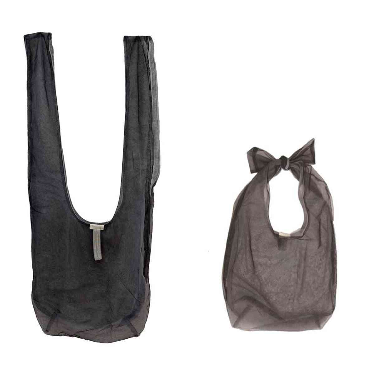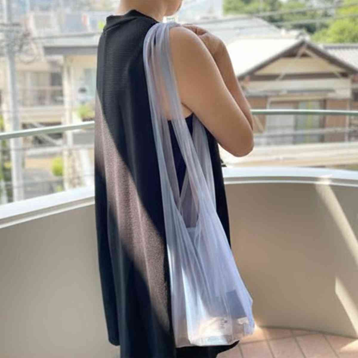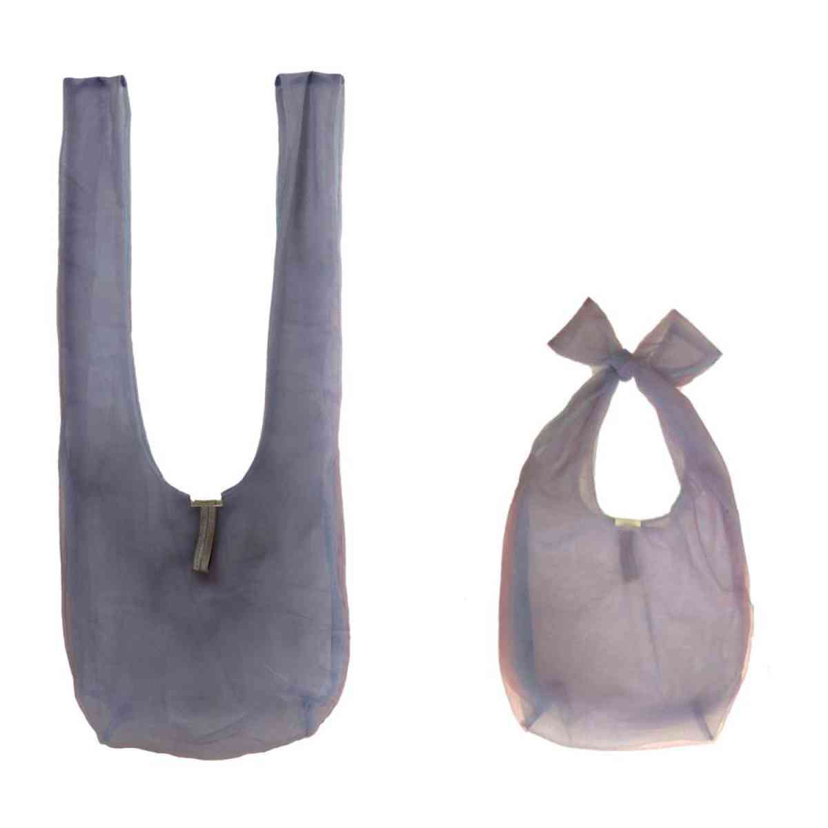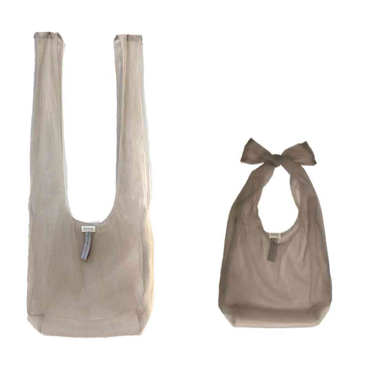 ふわっと軽いFuwaryのエコバッグは、結び方を変えるだけで肩掛けにも手提げにもアレンジでき、荷物に合わせて使い分けられます。軽量で柔らかい生地なので、持ち歩きやすく普段使いにぴったりです。